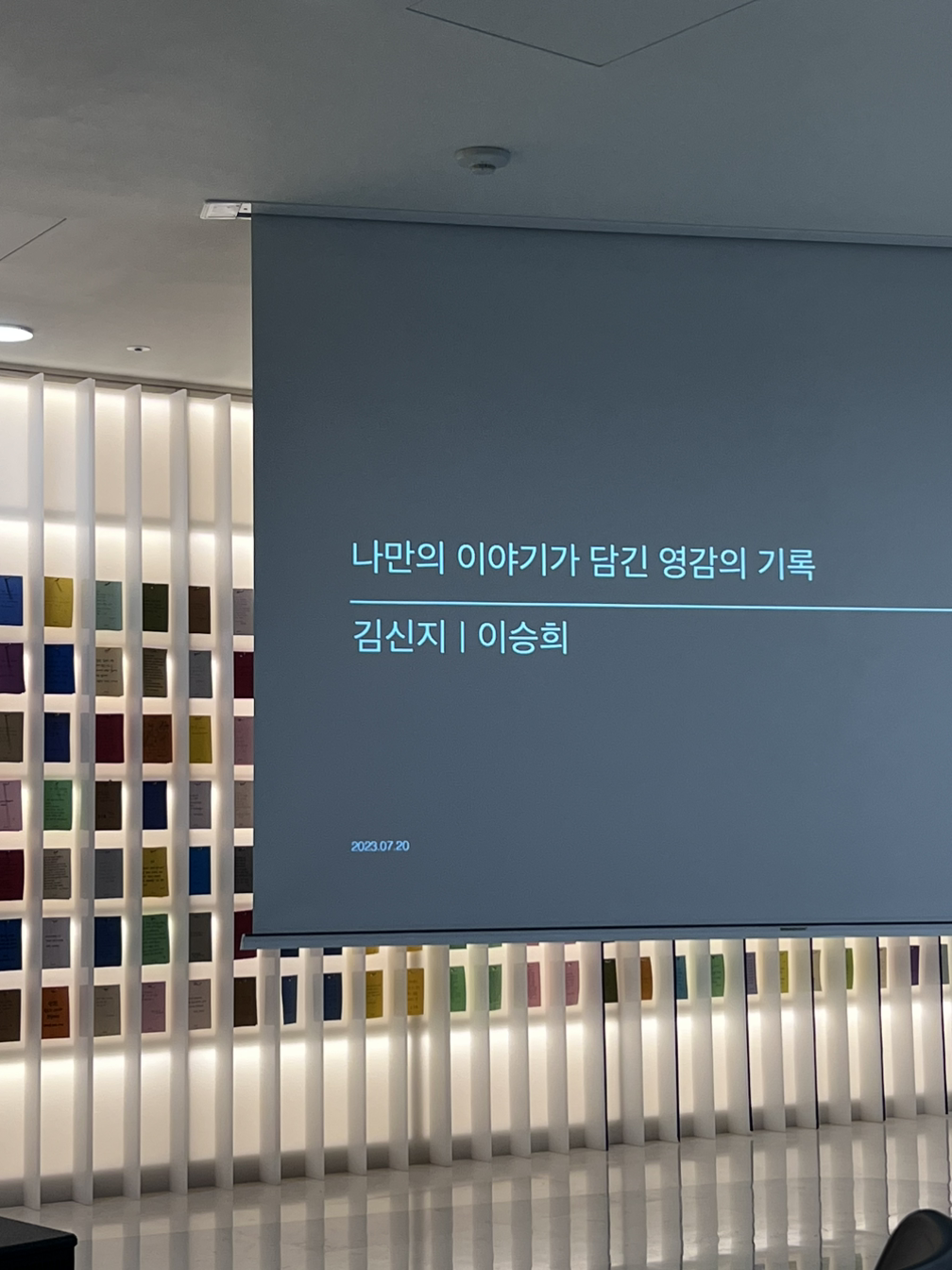 그날 강연의 제목은 “나만의 이야기가 담긴 영감의 기록”이었다. 『좋아하는 것을 좋아하는 게 취미』를 쓴 김신지 작가님과, 『기록의 쓸모』를 쓴 이승희 작가님이 함께 이야기를 이끌어가는 자리였다. 나는 두 작가님의 빅팬이라 이 조합을 놓칠 수 없었다.