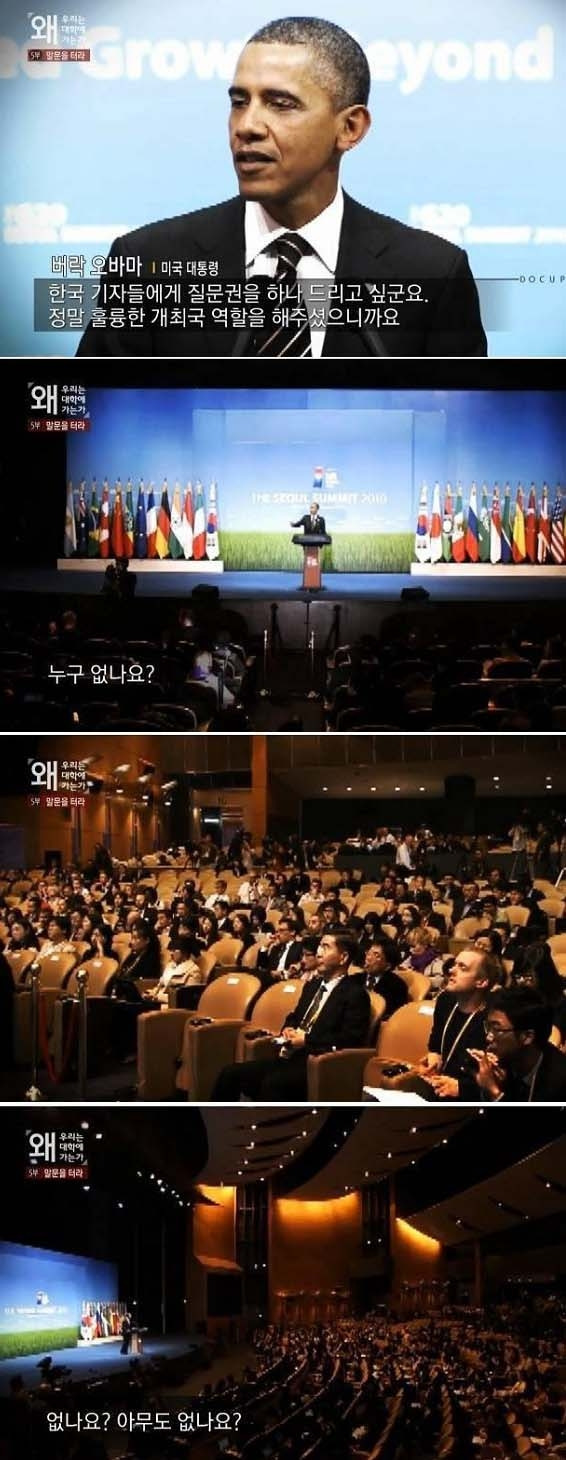 이런 문제가 토론모임에 국한된 것은 아닙니다. 예전에 오바마 전 미국 대통령이 기자회견 도중에 한국 기자들에게 먼저 질문할 기회를 준 적이 있습니다. 한참을 기다려도 아무도 질문하지 않자, 보다 못한 중국 기자가 질의를 했죠. 이 장면이 매스컴을 통해 알려진 뒤 사람들은 국제적인 망신이라며 떠들어댔습니다. 비단 기자들만의 문제일까요? 당장 한국의 교실 수업이나 직장에서의 회의 시간만 봐도 알 수 있습니다. 질문이 없기는 기자나 학생, 직장인 모두 매한가지라는 것을.