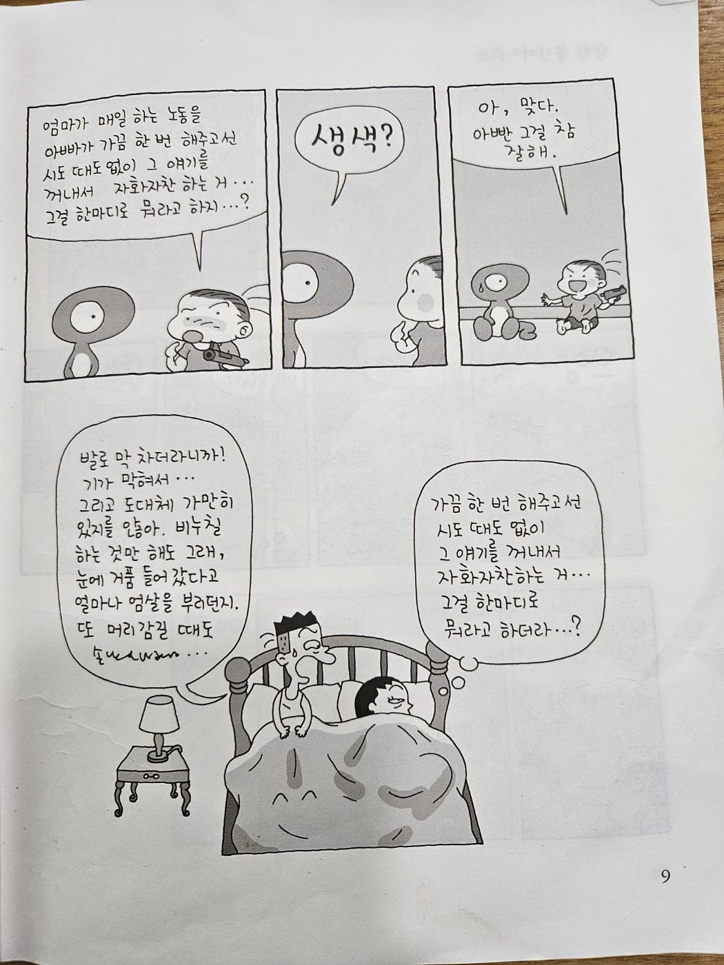 근데 마지막 장 되게 찔리네. 밥 주는 게 당연한 그거를 가지고 생색이 막 나는, 나는야 이런 엄마.
