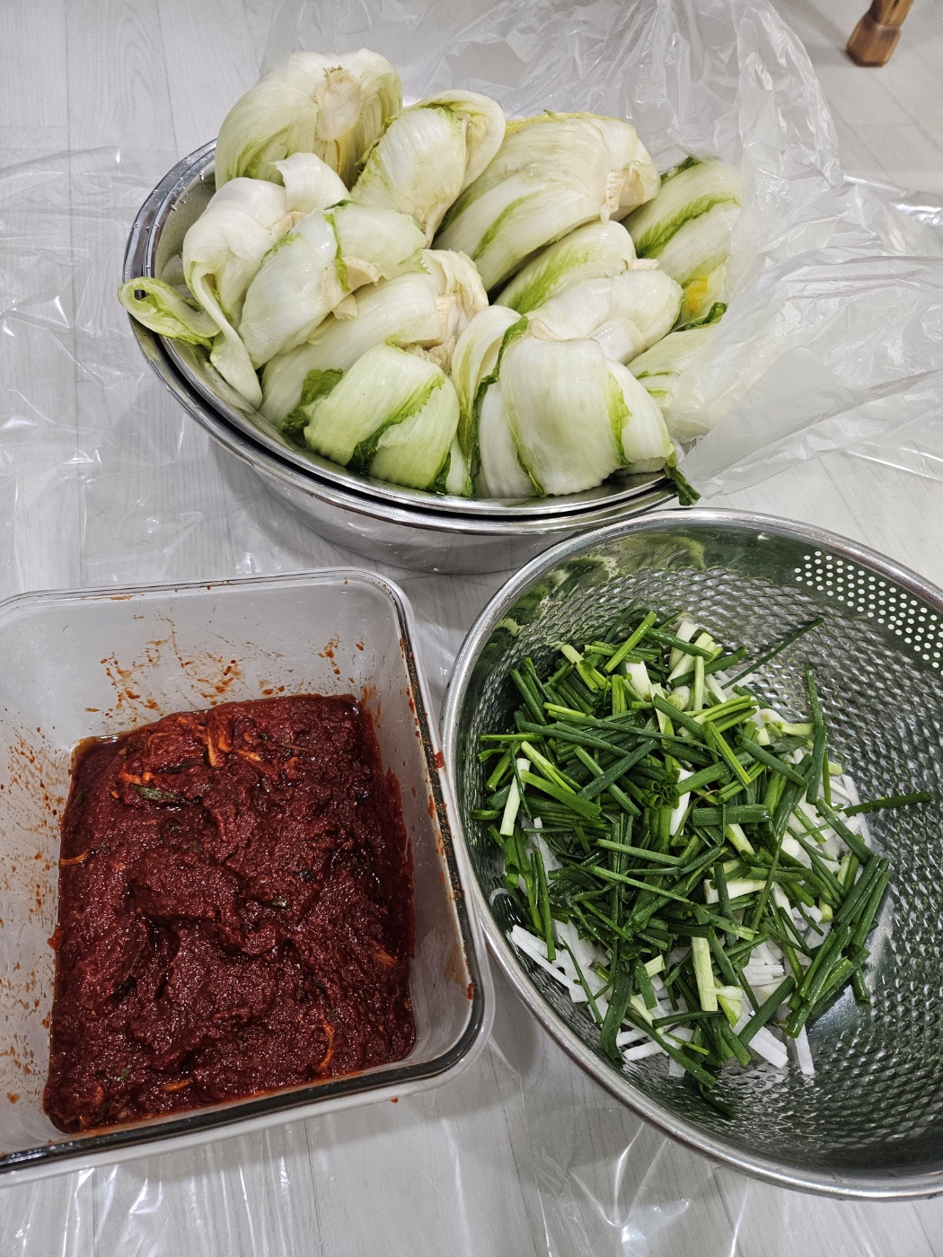 김장김치가 그리웠다. 김치를 얻어올 곳은 없는데 직접 할 능력은 안되니 남편의 원함대로 종갓집 맛김치를 사 먹고 있었다. 남편과 애들은 좋아하는데 나는 집에서 담근 맛의 김치가 그리웠다. 김장하면서 하나씩 뜯어먹는 재미도 느끼고 싶고 따끈한 수육도 먹고 싶었다. 보쌈집에서 사 먹는 수육과는 또 다른 그 맛.