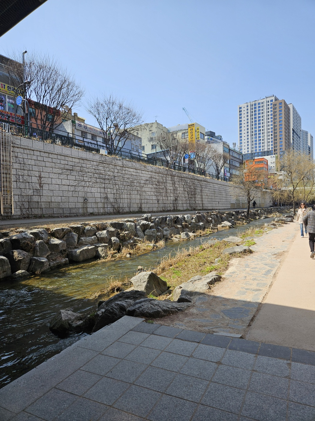 다 먹고 D.D.P라는 곳까지 걸어보잔다. 가는 길에 서울의 4대문(?) 같이 생긴 머시깽이가 있다며 머라 머라 설명해 준다. 아까는 떡볶이 먹을 생각에 안 들렸는데 지금은 배가 불러서 안 들린다. D.D.R도 아니고(이거 아는 사람) D.M.Z도 아니고, D.D.P가 뭔지 또 설명해 준다. 참 친절해 이 언니. 언니를 구경하며 웬 커다란 인형이 길바닥에 있길래 한번 만져주고, 오 여기가 청계천이랑 이어지다니 너무 신기하고. 서울이 이렇게 생겼구나. 도대체 청계천에 많은 상점들이 있다는데 어디에 있다는 걸까 늘 궁금했는데 그게 바로 여기였다. 하천으로 내려가니 어머나, 여기 물고기도 살고 두루미? 청둥오리? 이런 것도 살고. 허허 "시골영감 처음 타는 기차놀이라 차표 파는 아가씨와 실갱이하네" 노래가 절로 나오네. 여기가 바로 한양이렸다. J 언니가 또 이야기를 시작한다. 이방원이었나 이성계였나 암튼 세종대왕의 아빠라고 한 거 같은데 아무튼 어떤 아빠가 갖다 놨다던 돌멩이 얘기도 해주고, 참 아는 거 많아 이 언니...