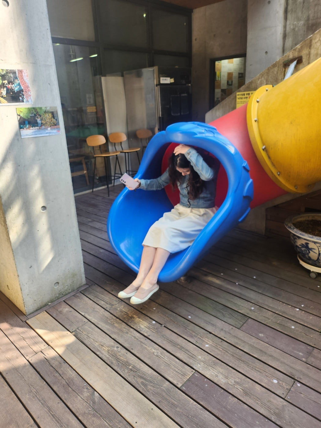 미끄럼틀 애들만 타란 법 있나요?
