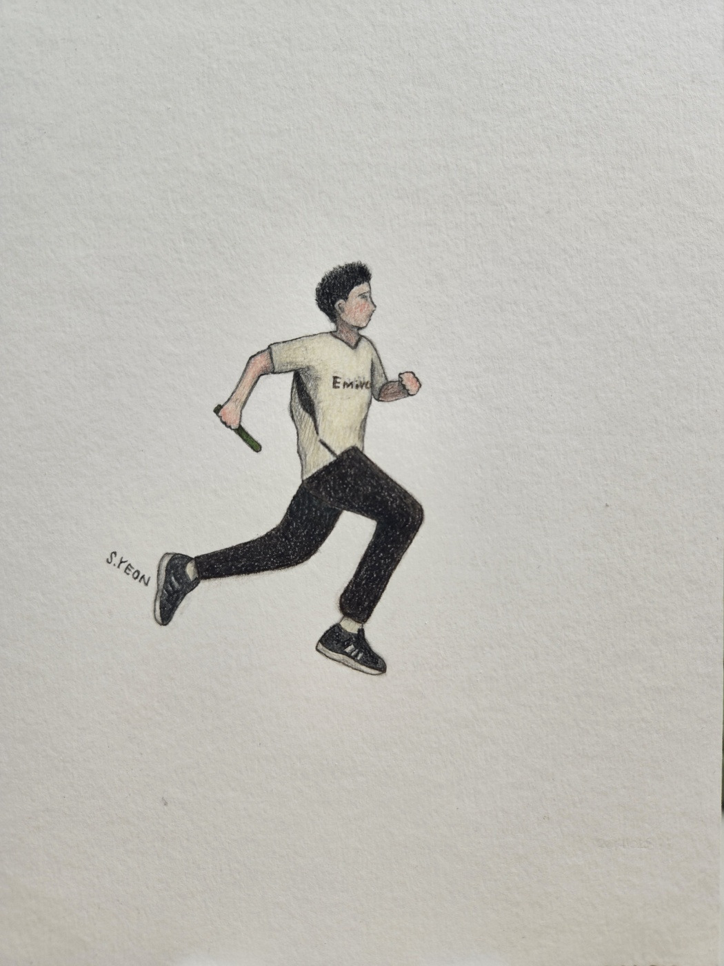 운동장에 하얗게 분칠 한 달리기 라인, 그 라인 따라 주르르 선 아이들, 환호하는 아이들, 탕 하는 총소리, 흩날리는 머리카락, 넘어지기 쉬운 커브코너 그리고 마의 구간 바통터치.... 이 모든 장면이 흑백필름 속에 펼쳐졌다. 불과 얼마 전인 것 같은데 어느새 나는 '엄마'가 되어 서 있다. 아들 둘, 남편 하나(?), 그리고 햇빛 들어오는 집과 편히 누울 침대까지. 어릴 적 감히 생각도 못했던 평범한 행복이 나를 두르고 분에 넘치는 일상을 보내고 있다. 한때 이 평범함을 얼마나 싫어했던지. 특별하고 싶어 흙빛으로 가득했던 우울한 이삼십 대였다. 그 시절 그렇게 바라던 빛나는 직업, 전문성, 성숙한 성품은 여전히 이루지 못했다. 아이 둘 낳았지만 육아에 살림 어느 것 하나 제대로 잘하는 게 없다. 그런데 바통을 받고 달리는 아들의 머리카락과 힘줄과 숨결을 보고 느끼며 왜 이리 가슴이 터질 것 같은지. 두 다리가 힘차게 어긋나며 앞으로 내달리는 저 모습에 울컥함이 올라온다. 내 인생에 이룬 것이 없다고 절망하던 나여 - 하늘은 맑고 아이는 달리고 나는 그걸 바라본다. 이 이상 무엇이 더 필요한가. 나는 이제 결코 예전에 하던 그런 종류의 절망은 하지 않기로 한다.