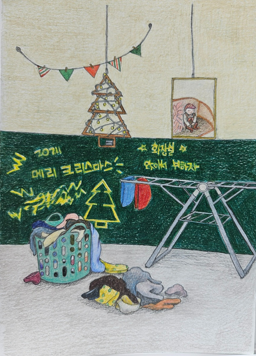 그러니까, 힘을 빼고 쓸라고 하지 말고 일단 그냥 써보자고. 설거지를 잘하는 특별한 방법 따윈 없다고. 일단 위에 있는 그릇부터 한 개씩 씻어내면 된다고. 크리스마스에 여전한 방식으로 빨래를 널다가, 갑자기 이 장면을 그려야지 생각이 들었고, 그림에 맞춰 글을 쓰다가 매일 일기를 써야겠단 생각이 들었다. 의욕이 날 때까지 기다리지 말고(그래야 될 때도 있겠지요) 여전한 방식으로 습관처럼 그냥 한 번 써보자. 일단 한 달만 도전이다.