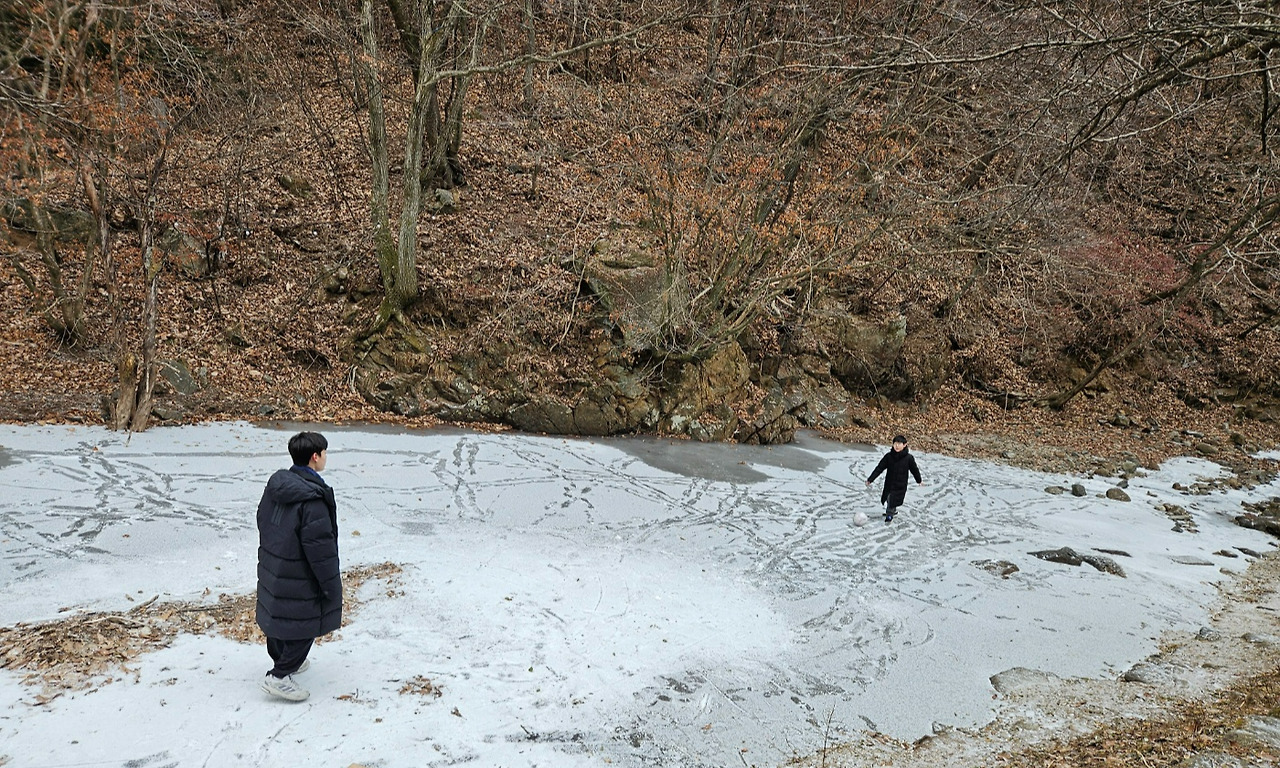 아이들과 하루종일 붙어있는 건 아무리 여행이라도 쉼이 아니다. 잠시라도 혼자 있는 이 시간이 너무도 달콤하다. 동시에 불안하다. 너무 고요하다. 뭘 하고 있는 거지, 얼음이 깨진 건 아니겠지, 힐끗힐끗 나무로 가려진 계곡 쪽을 자꾸만 쳐다본다. 30분 이상 지난 거 같다. 한숨을 짧게 내쉬고 일어섰다. 계곡 쪽에 인기척이 느껴진다. 나무 뒤에 몸을 숨겼다. 아들 둘이 축구공을 주고받는다. 발목이 삐어 계단 오르지 말라고 학원도 일주일 쉬었는데 저러고 공을 찬다고? "야 너 웬 축구를 하고 있어? 하지 마!" 소리를 지르려다 문득, 둘이서 같이 노는 게 얼마만인가 싶었다. 큰 애는 동생이 제일 싫다며 악담을 퍼부었었고, 분노가 폭발해 애를 눕혀놓고 발로 밟기까지 한 적도 있었다. 그 후로 동생은 형을 피해 다니며 일기장에 이렇게 적었다; 형은 자기를 죽이려 드는 악마 같은 사람이라고.