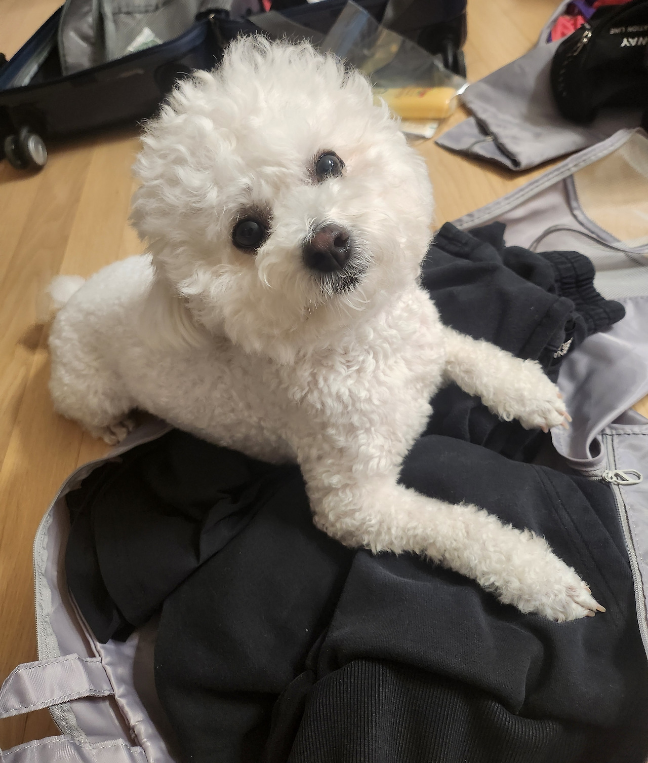 아들은 크림이를 내려놓고 옷가지들을 야무치게 캐리어에 담아