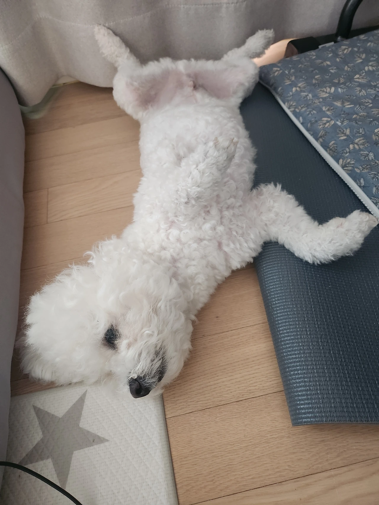 핑크 빛 배를 까보이며 소중한 부분까지 모두 보이며 잠든 크림이