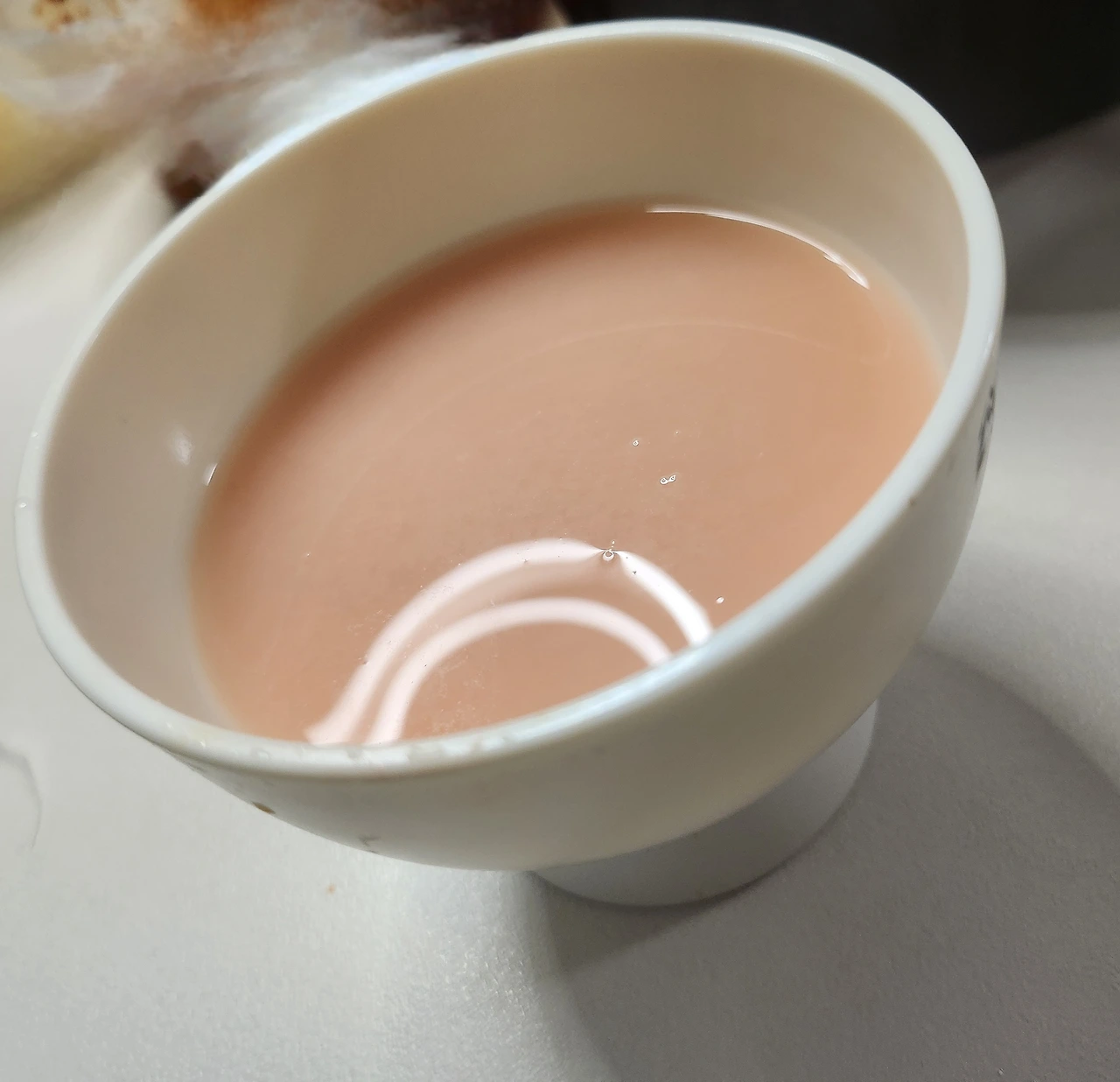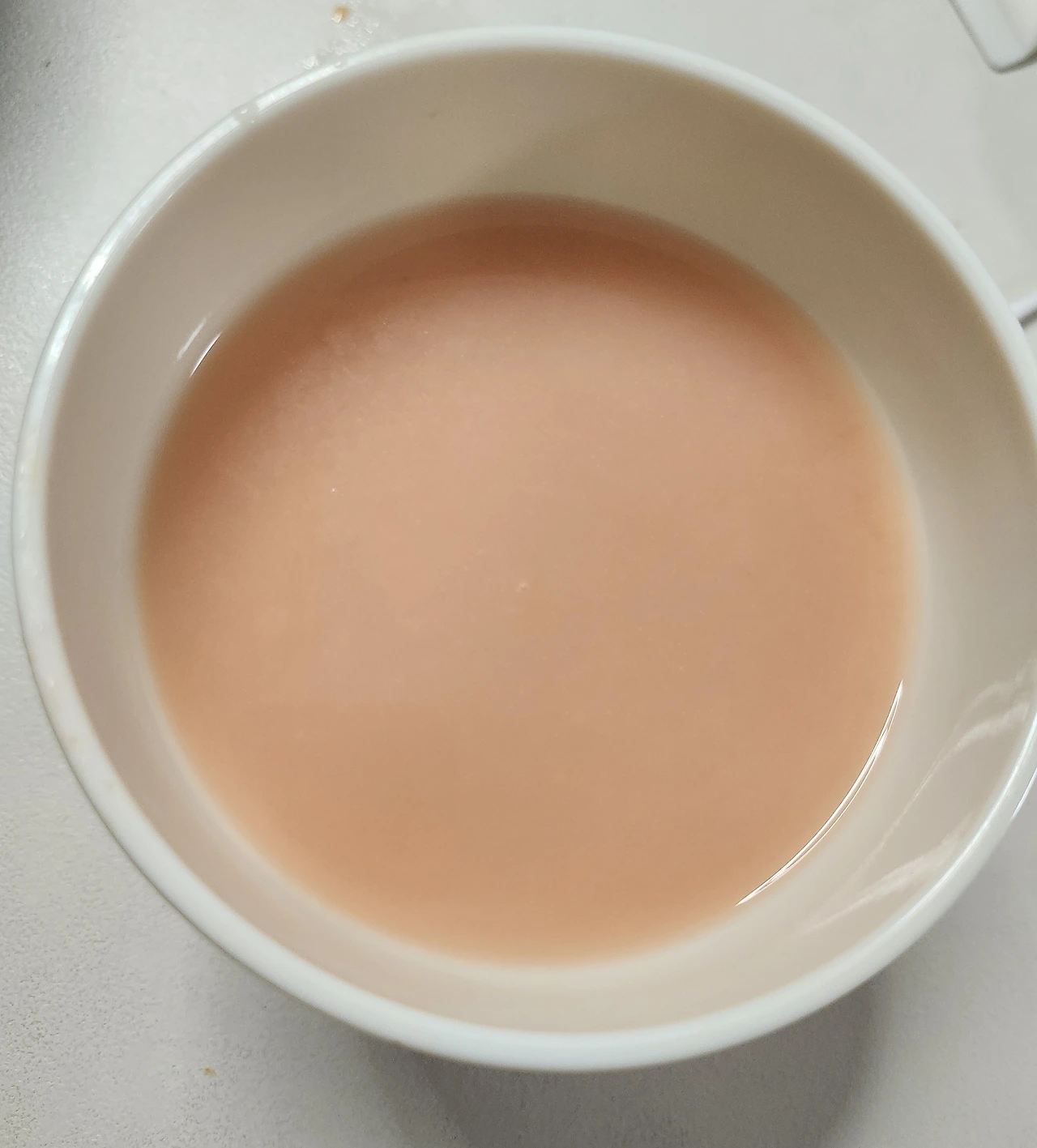 스킨색 막걸리에 빨간 토마토 주스가 들어가니 은은한 핑크빛이 도는 베이지 색의 아름다운 막걸리가 되었다.