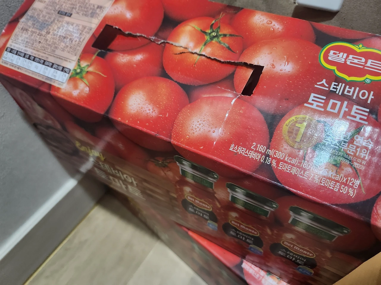 카트 안에는 병문안 갈 때나 들고 갈 법한 아니 요즘은 병문안 갈 때도 안 들고 간다는 토마토주스가 두 박스나 들어 있었다.
