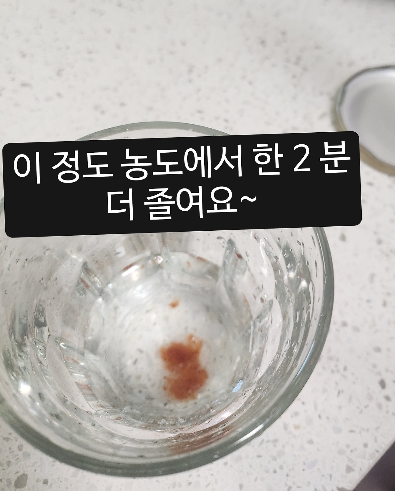 5. 3분의 1 정도 졸여졌을 때 가장 중요한 농도 테스트를 진행합니다.