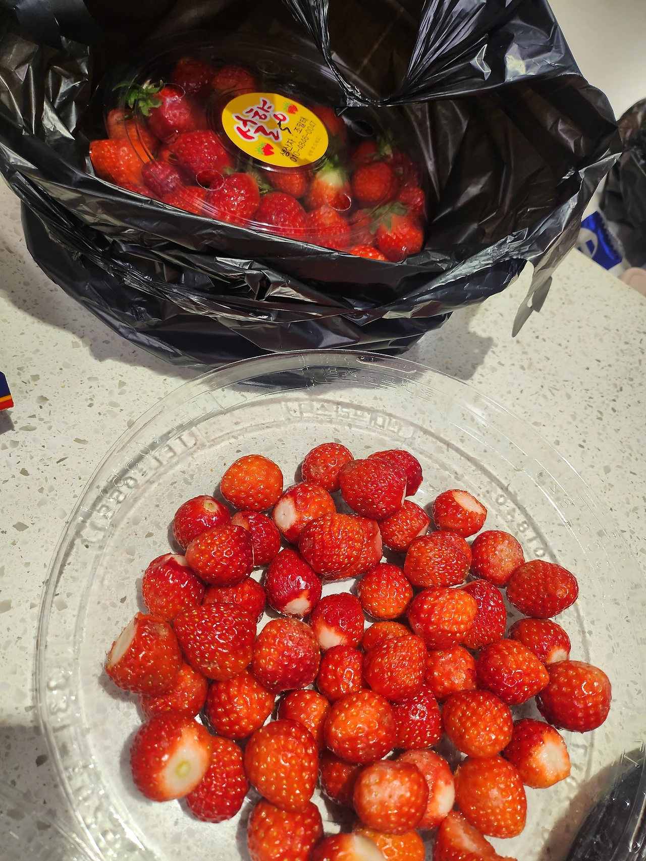 1. 꼭지 딴 딸기를 깨끗이 씻습니다. 무려 6통