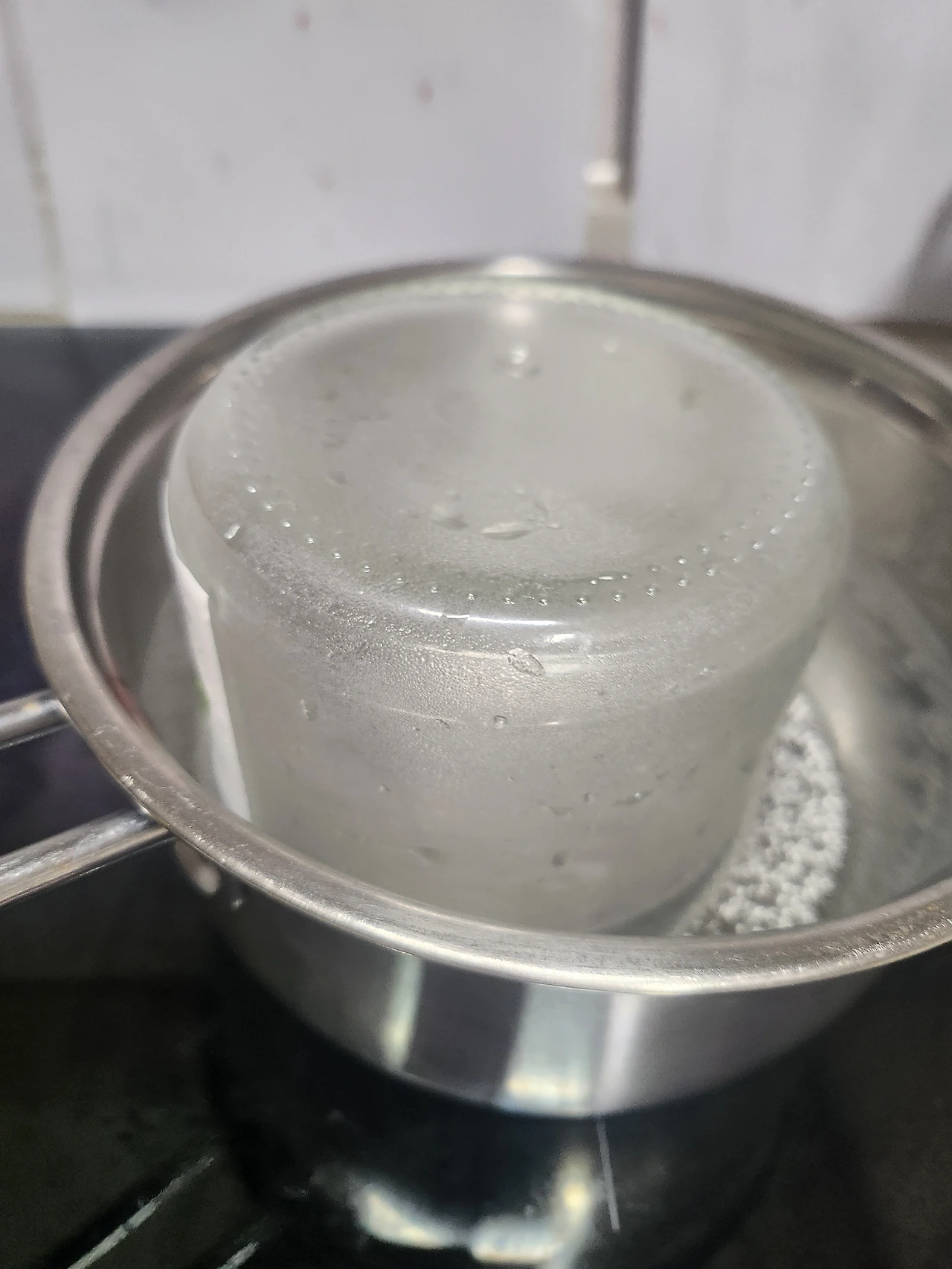찬 물에 잼을 조금 떨어뜨려 모양이 흐트러지지 않으면 합격입니다.