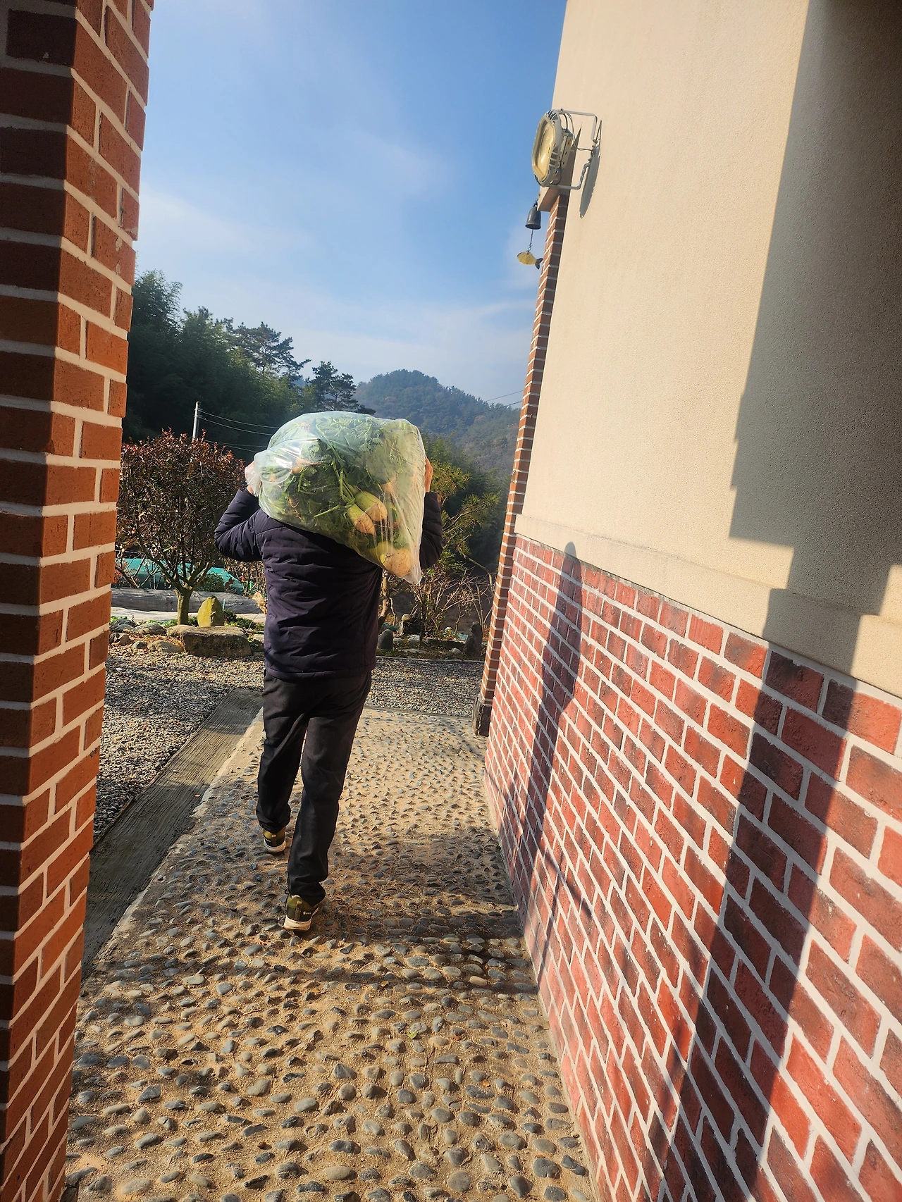 어머님은 묵직하게 알이 꽉 찬 배추를 두 고랑이나 뽑아 주셨다. 나와 동서는 큰 비닐에 배추를 옮겨 담았다. 얼마나 무거운지 허리가 뻐근할 정도였다. 한 봉지에 열개 씩 두 봉지를 채웠다. 내 힘으로는 절대 못 들 무게라 남편이 이고 차까지 실어 날랐다. 동서와 도련님은 둘이 끙끙대며 배추를 옮기고 있었다. 그 모습이 얼마나 웃기던지... 반대로 50살인 남편이 그 무거움 배추 봉지를 번쩍 들어 어깨에 메는 걸 보니 든든하긴 했다.