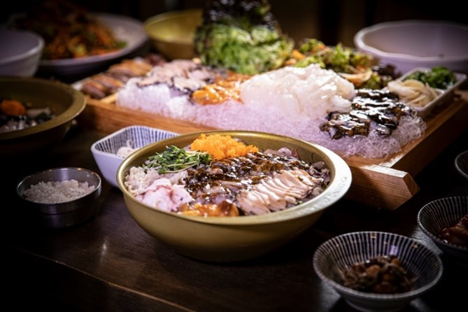 바다가 가까운 속초는 대게, 회, 오징어 등 해산물을 저렴하게 먹을 수 있다. 여러 바닷가 여행지를 가서 물회를 사 먹어 봤지만, 속초 물회가 개인적으로 가장 맛있었다. 속초에 세컨드하우스를 구하기 전에도 2~3년에 한 번씩은 속초 여행을 왔었는데 그때마다 물회를 사 먹었던 기억이 있을 정도다. 속초 물회 하면 가장 유명한 곳은 ‘청초수 물회’다. 예전 작은 건물에 있을 때부터 갔던 곳인데, 지금은 큰 건물로 확장하여 영업 중이다. 워낙 핫플이라 관광객들이 관광버스에서 대거 내려서 번호표를 받고 줄지어 들어간다. 2층이나 3층으로 올라가게 되는데 탁 트인 창을 통해 바라보는 청초호수 뷰가 끝내준다. 로봇이 대량으로 홀서빙을 담당하고 있다. 대표 메뉴는 해전물회로 여러 가지 횟감과 활전복, 해삼, 멍게, 문어, 날치알이 사골육수와 어우러져 맛이 일품이다.