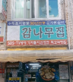 속초에서 가장 유명한 감자 옹심이집은 속초 시장 안에 있는 ‘감나무집 감자옹심이’이다. 오전 10시부터 오후 5시까지 영업시간이지만 기본 한 시간 웨이팅에 재료가 소진되면 문을 닫아서 성공하기가 쉽지 않다. 아무리 맛집이어도 아이들이 있는 가족들에게 웨이팅은 어렵다. 시장 안에 ‘속초신토불이 감자옹심이’ 집과 ‘감자골 옹심이’도 대부분 국산 재료를 쓰고, 시간대만 잘 맞춰서 가면 기다리지 않고 먹을 수 있다.