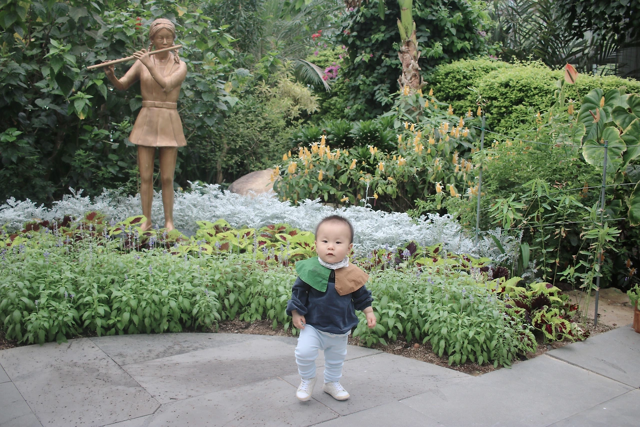 경주는 저희 집에서 가까운 곳이다 보니 자주 다니는 곳 중 하나이다. 처음 경주를 갔을 때 다녀온 곳은 동궁원인데, 버드파크와 함께 있어 다양하게 즐길 수 있다. 작은 동물원에 갔을 당시 새소리를 무서워했던지라 진금이수(진귀한 새들과 기이한 짐승들)를 볼 수 있는 기회는 다음으로 미루고 정원만 다녀왔다. 이맘때에 아이가 풀과 꽃에 관심이 많다 보니 길가를 지나가다 식물들을 보면 자리에 멈춰서 손가락으로 콕콕 찔러보던 때이니 얼마나 신나 할지 눈에 선했다.