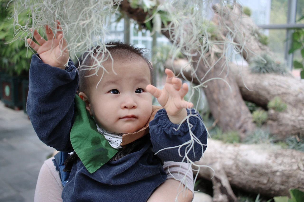 예상대로 이 아이는 매우 만족해했다. 혼자 걸어 다니면서 온갖 식물을 만져보고 흙도 파헤쳐보면서(이때 살짝 멘붕이 왔다) 자기 나름대로의 지식과 경험을 축적하는 중이었다. 타이머를 맞춰서 찍으려고 한 사진들을 보다시피 누구와 찍었는지도 모르겠는 사진만 남고 해맑게 웃던 장면들은 찍지 못했지만 공중식물 틸란드시아를 만져보면서 좋아하던 모습이 잊히지 않는다. 우리가 동궁원을 돌아다닌 시간은 정확히 2시간 16분이다. 15개월 아이가 저 정도의 시간을 한 공간에 있었다는 건 굉장히 볼거리가 많고 재미있었다는 뜻이다.