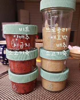 그러면서도 한편으론 시판 이유식을 틈이 날 때마다 검색했다. 공장에서 만들어지는 제품과 달리 집과 가까운 곳에서 수제로 이유식을 만들어 배달해주는 업체들이 꽤 있었다. 관련 후기로 찾아보고 테스트용으로 몇 개 주문해 봤더니 유관상 내가 직접 만든 이유식과 크게 다르지 않았다. 이유식 재료도 다양했고, 각 재료도 유기농으로 구입한 뒤 이유식 매장 온라인 카페에 사진으로 올라왔다. 가장 중요한 건, 쮸니에게 시판 이유식을 먹여봤더니 곧잘 먹었다는 점이다. 초-중기 이유식 때 그렇게 유난을 떨었던 엄마지만, 후기 이유식 땐 해당 가게에 주문해 먹였다. 두세 달가량 애용했던 것 같다.