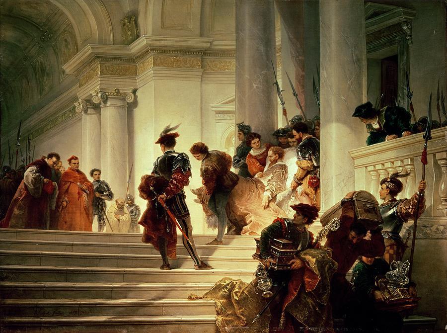 바티칸을 떠나는 체사레(1877) Giuseppe Lorenzo Gatteri, 신사의 초상화(1513, 체사레로 추정됨) Altobello Melone, 출처: wikimed