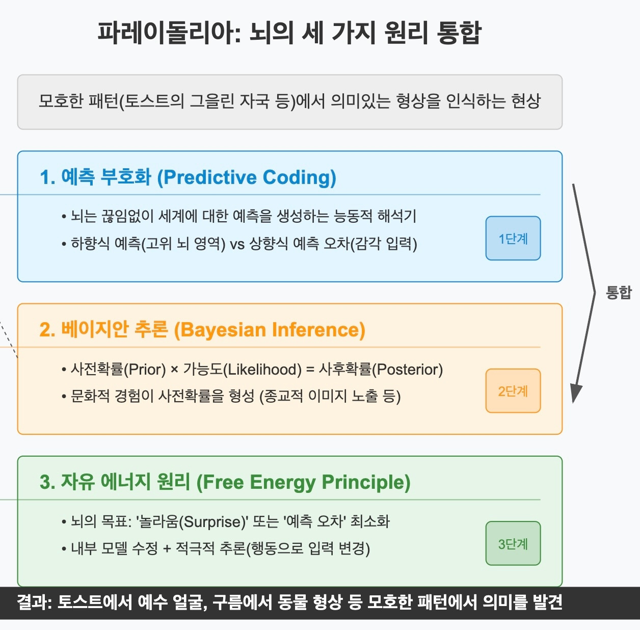 [예측부호화, 자유에너지, 베이지안 추론에 대해서는 이 글 말미 주석으로 상세설명- 뇌의 세 가지 원리로 보는 파레이돌리아 현상]