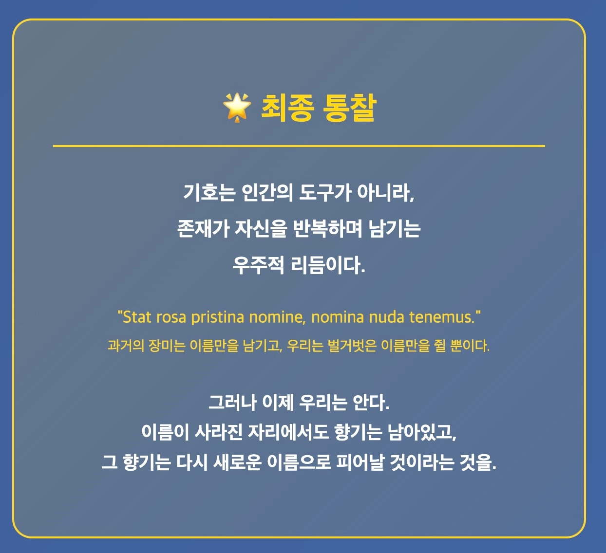 기호의 리듬을 따라 존재가 자신을 어떻게 구성했는지를 복기하는 행위이다.