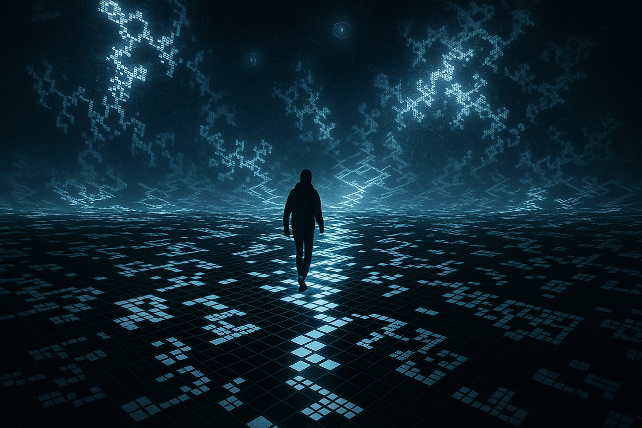 그는 우리가 사는 현실을 존 콘웨이의 “라이프 게임”과 유사한 정보적 시뮬레이션, 즉 코드화된 현실로 본다.