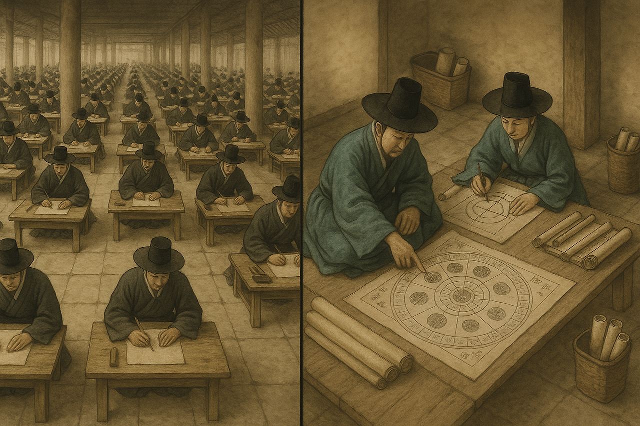 그러나 그 ‘중심의 질서’ 아래에 잡과(雜科)라 불리는 제도적 경계가 존재했다. 여기서 우리는 흥미로운 삼분 구조를 만난다: 천문(天文), 지리(地理), 명(命).