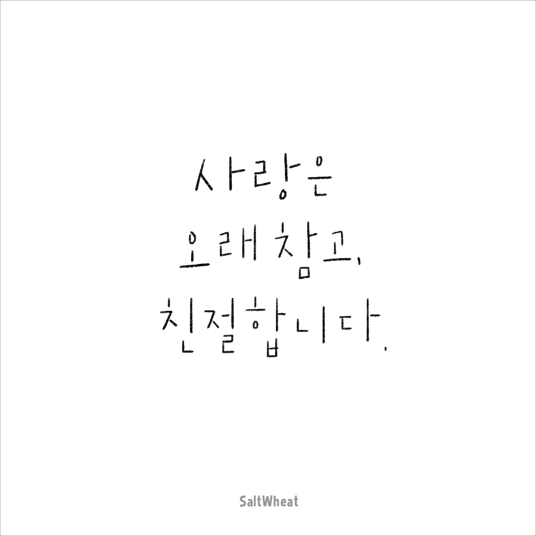 사랑은 오래 참고. 친절합니다.