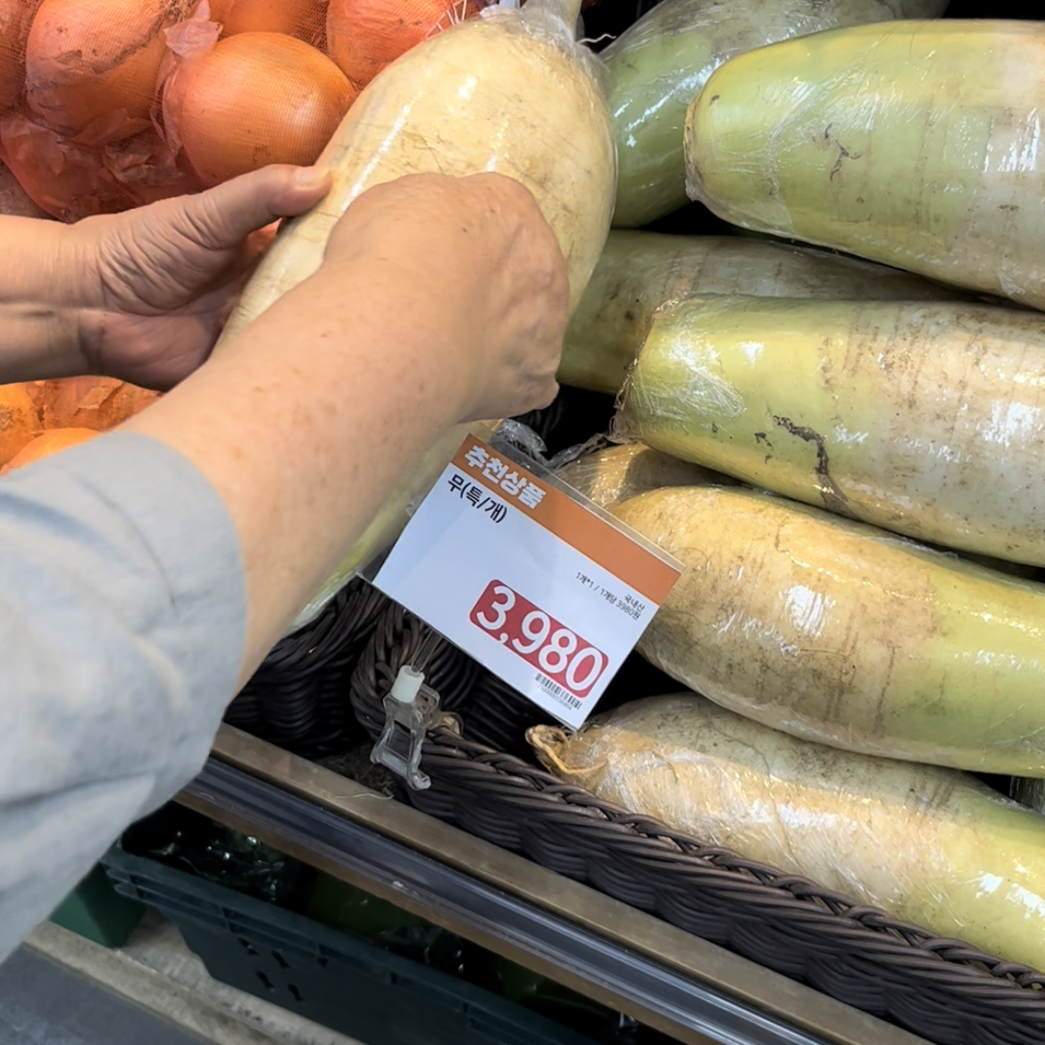 무를 삽니다. 요즘 3,980원이네요!