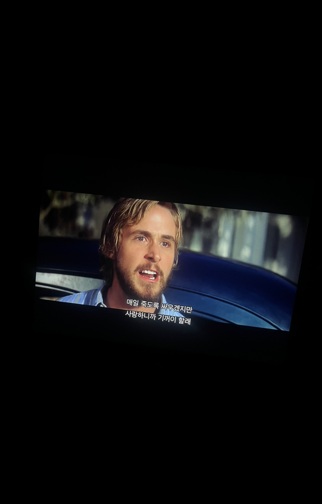 <노트북> 속 노아가 '우린 역시 또 싸우네'라며 자리를 박차고 일어서는 앨리를 붙잡고 앞서 말한 대사를 외칠 때. 싸워도 사랑하니까 기꺼이 하겠다는 노아의 표정에서 진짜 사랑이 보였다. 어쩌면 나의 개똥철칙이 아마 그때 수정 되었을지도 모른다. 아.. 사랑해도 힘들면 놓는 게 아니라 그럼에도 붙잡고 있는 힘이 어쩌면 진짜 사랑이겠구나. 헉!