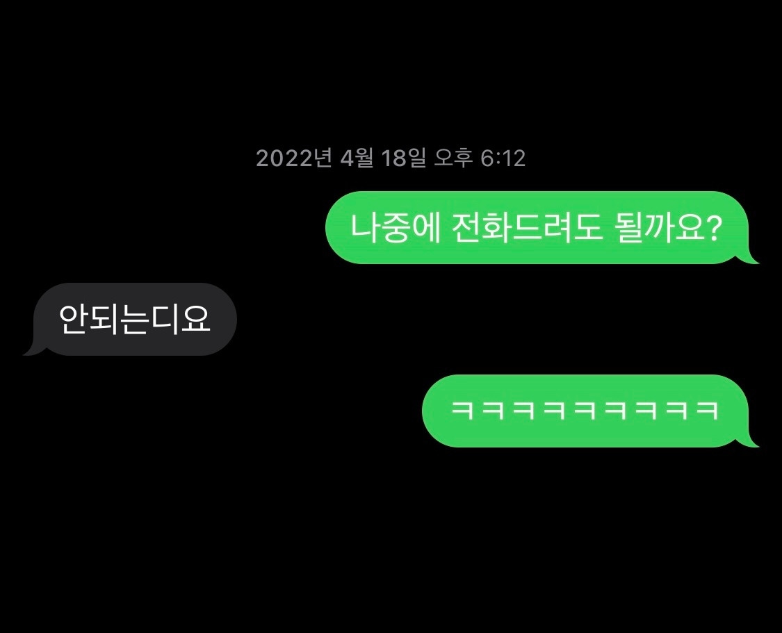 쉽게 보면 '감동받는 순간'이라 표현할 수 도있겠지만 오묘하게 다르다. 물론 긍정적인 마음이 둘러싼 생각들이지만 바늘구멍만큼 작은 취향적 구멍을 관통했을 때의 '어?'의 열기는 쉽사리 꺼트릴 수 없다. 덕분에 오랜만에 그와의 문자 스토리가 떠올라 피식피식 웃었다. 퇴근길 만원 지하철에서 목숨만 부지하던 찰나 그에게서 전화가 걸려왔다. 거절을 누르며 아래와 같이 문자(자동완성문자)를 보냈더니 예상치 못한 답을 받고 그 꽉 찬 지하철 안에서 혼자 터지고 말았다.