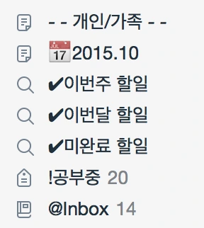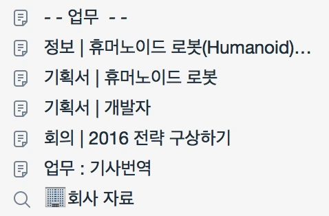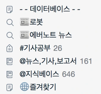 여기서는 태그나 노트북 구조에 관한 상세한 설명은 생략한다. 대신, 바로가기 구조를 보여주는 것으로 이런 식으로도 활용할 수 있음을 보여주고자 한다.