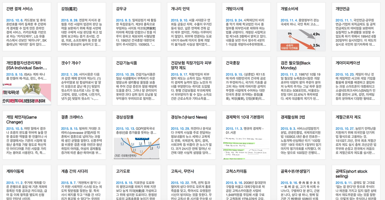 특히 ‘펼쳐진 카드 보기’는 한 화면에 콘텐츠를 목록화해서 볼 수 있다는 점에서 자주 애용한다. 이미지나 텍스트를 간단하게 훑어보고 관심 있는 것만 더블 클릭해서 보면 되므로 간편하다. 에버노트에서 보는 모든 콘텐츠는 다른 애플리케이션을 열어보지 않아도 된다는 점에서도 좋다.