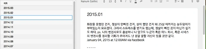 일기뿐만 아니라 영감 노트로도 작성해도 좋다. 요지는, 사용자가 원하는 방식대로 사용하면 그만이라는 것이다. 페이스북이 SNS라고는 하지만, 꼭 사람들과의 소통을 위한 도구로 한정할 필요는 없을 것 같다.