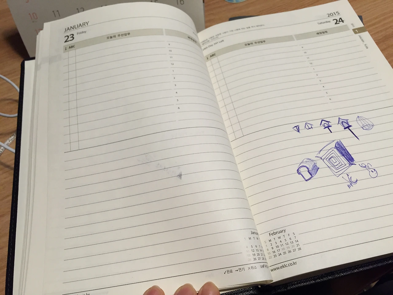 NHN엔터에 출입하게 되면서 2016년 신년 다이어리를 받았다. 한쪽 손바닥만 한 크기의 종이 상자를 풀어보니 거기에는 메모지, 달력, 다이어리 3종 세트가 들어 있었다. 딱 필요한 것만 갖추고 부피도 최소화했다는 것 자체부터가 마음에 썩 들었다. 그래서 현재 메모를 기록하는 제1노트로 사용하고 있다.