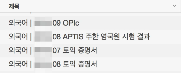 외국어의 경우, 성적표 배부일로부터 2년간 유효하므로, 언제 시험 결과를 받았는지 제목에 기록해주는 것도 좋다.