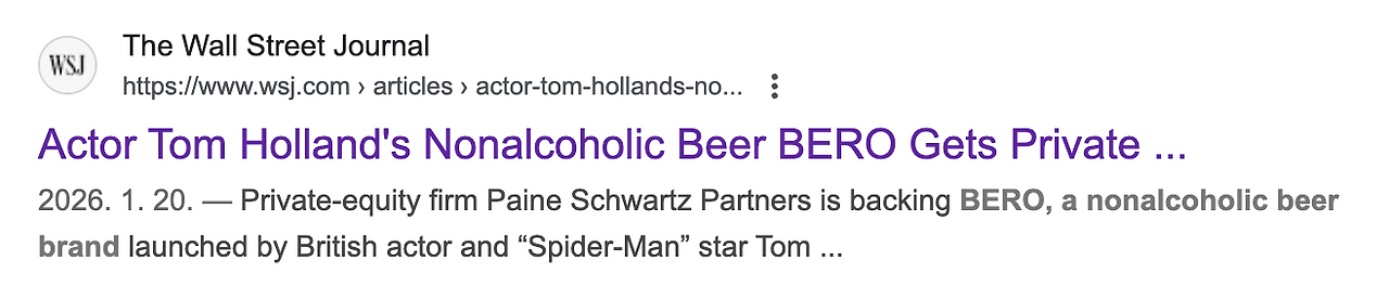 기사전문 보기 : Actor Tom Holland’s Nonalcoholic Beer BERO Gets Private-Equity Backing - WSJ