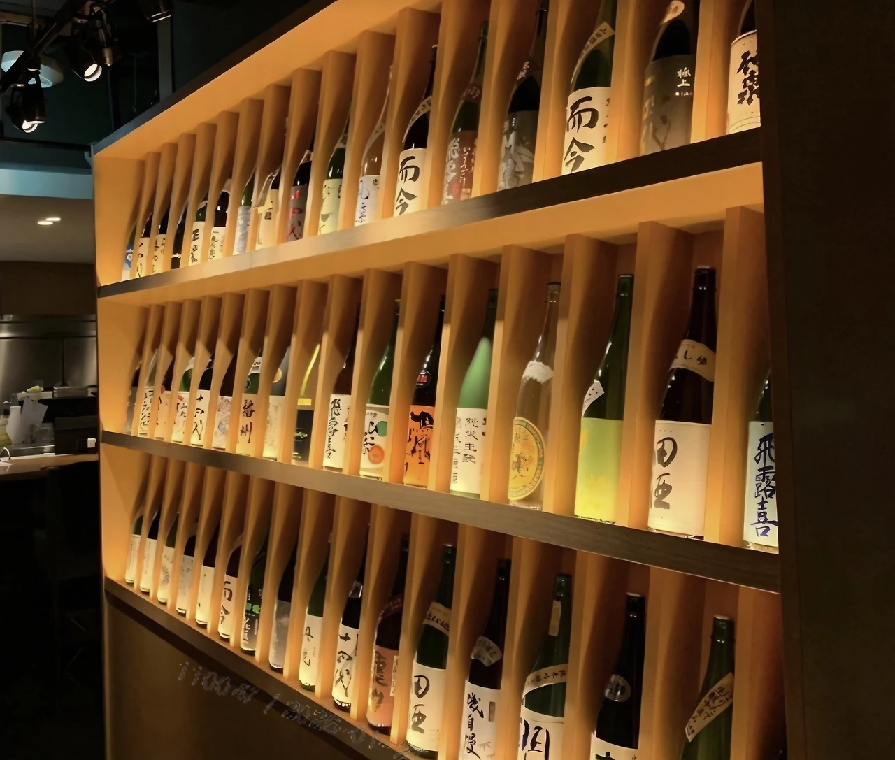 자리에 앉으면 주방을 가득 채운 엄청난 '사케 컬렉션'이 눈에 들어온다. 술은 '잔'과 '병; 단위로 주문할 수 있는데, 주문할 수 있는 사케의 종류가 다양하니 이왕이면 '잔 술'을 시켜 여러 가지 사케를 비교하면서 음미해 보길 추천한다.