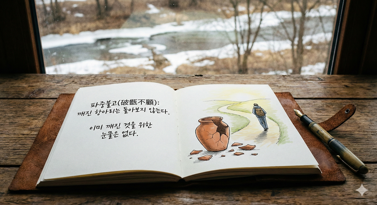 돌아보지 않는다는 것이 실패에 대한 무조건적인 '외면'과 '무책임'을 의미하는 것은 아니다. 과거의 실패와 오류에 매몰되지 않되, 왜 깨졌는지는 반드시 몸에 새겨야 한다. 항아리를 지고 가던 자세가 잘못되었던 건지, 아니면 항아리 자체가 부실했던 것인지 짧고 굵게 복기해야 한다.