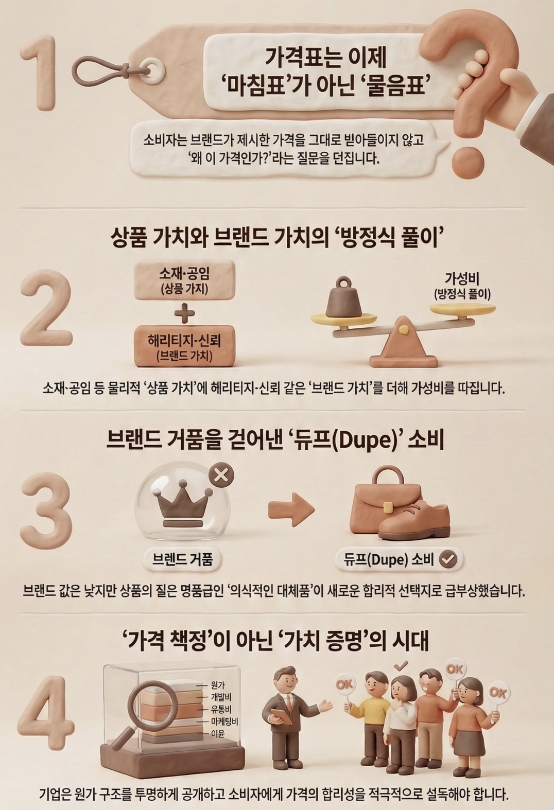 과거에는 싼 제품이라고 하면 미끼 상품 혹은 '싼 게 비지떡'으로 낮춰 보는 경향이 있었지만, 요즘 소비자들은 좋은 품질을 저렴하게 구매하는 것을 '합리적 소비'라 여긴다. 이들은 제품의 가격을 맹목적으로 수용하지 않고 원가, 유통 마진, 브랜드 가치 등을 암호 해독하듯 분석하는 성향을 보이기도 한다. 이른바 '프라이스 디코딩(Price Decoding)' 트렌드다. 유튜브 언박싱이나 제품을 분해해 보는 '테어다운(Teardown) 콘텐츠' 등을 통해 제품의 제조 공정과 원가 정보가 투명하게 공개되면서, 소비자들은 화려한 마케팅 거품을 걷어내고 제품의 순수한 '상품 가치'를 깐깐하게 평가할 수 있게 되었다.