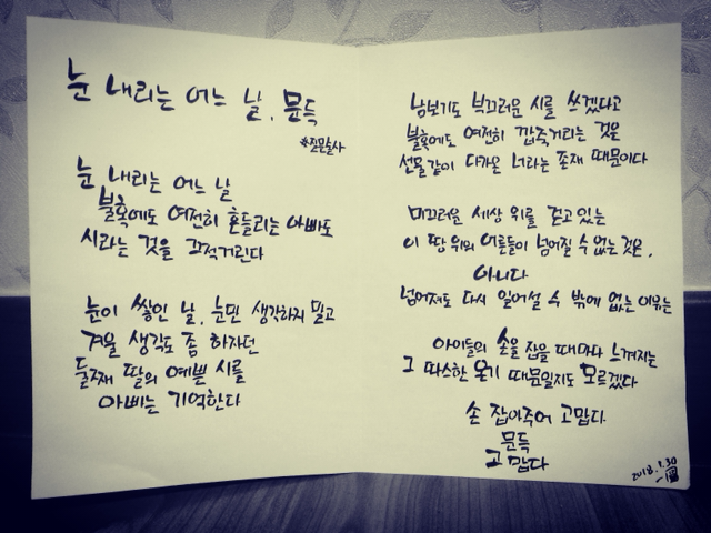 둘째 딸의 예쁜 시를 아빠는 기억한다