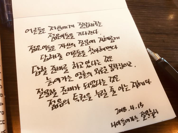 어른들은 자신에게 질문해주는 젊은이들을 기다린다. 젊은이들은 자신의 질문에 지혜롭게 답해줄 어른들을 찾아 헤맨다. 답할 준비를 하고 있다는 것은 늙어가는 영혼의 외로운 몸부림이고, 질문할 준비가 되었다는 것은 젊음의 특권을 누릴 줄 아는 지혜다.