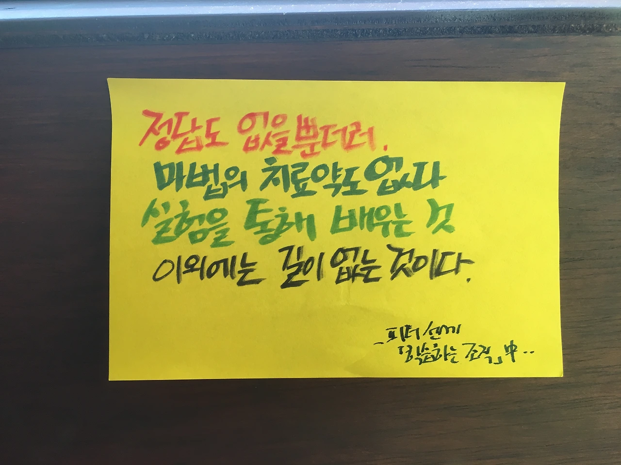 지금 전 제주도 어느 까페에서 제 인생의 중요한 배움들을 다시 물어보며, 끄적이기도 하면서 놀고 있습니다. 불혹이라는 나이-마흔이 되니, 제가 삶을 통해 배운 것들이 무엇이였는지 문득 정리하고 싶었나봅니다. 노트에 끄적인 부끄러운 성찰 몇가지를 정리해봅니다.