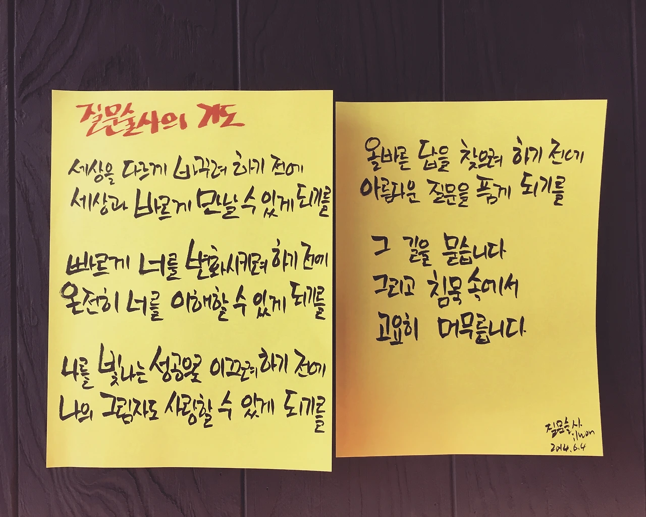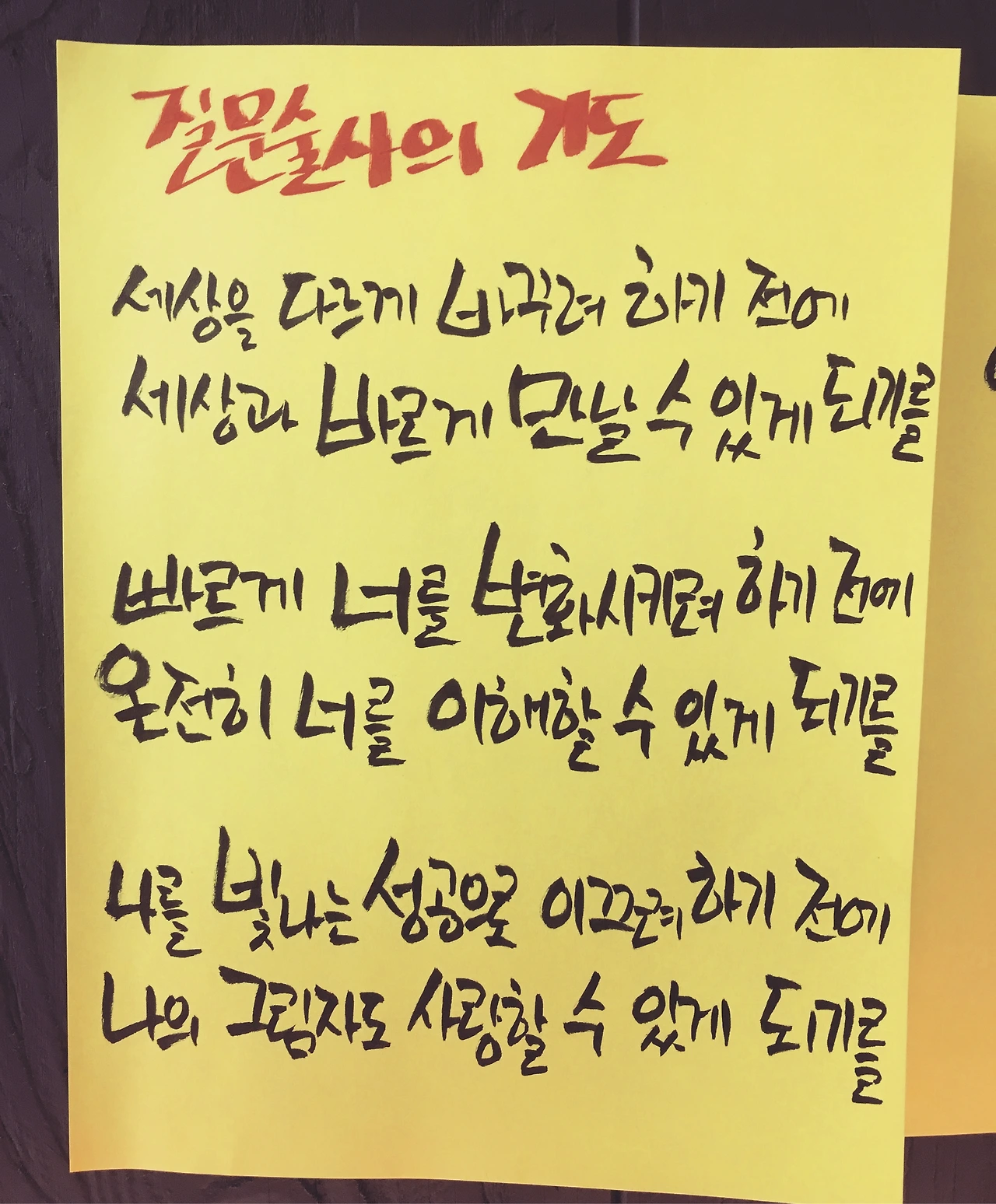 올바른 답을 찾으려 하기 전에아름다운 질문을 품게 되기를