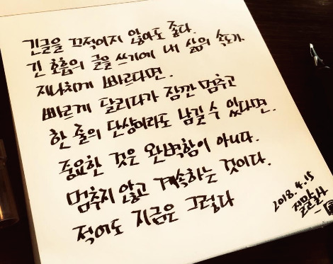 긴글을 끄적이지 않아도 좋다. 긴 호흡의 글을 쓰기에 내 삶의 속도가 지나치게 빠르다고 느끼는 순간이 많다. 잠시 멈추고 한 줄의 단상을 남길 수 있으면 충분하다. 그래서 요즘엔 독자를 위한 글쓰기 보다는, 나 자신의 생각을 들여다보기 위해 시를 쓴다. 지금 시기에 내게 중요한 것은 완벽함이 아니다. 멈추지 않고 계속하는 것이다. 적어도 지금은 그렇다. 첫 책은 잘 팔리는 책이였으면 했고, 두 번째 출간할 책은 내가 끄적거린 시시한 시를 모아둔 '시집'이길 바란다. 세 번째 책을 쓸 때는 조금은 힘을 빼고, 내 부족함을 고스란히 드러낸 책, 읽을 만한 책을 쓸 수 있게 되겠지.