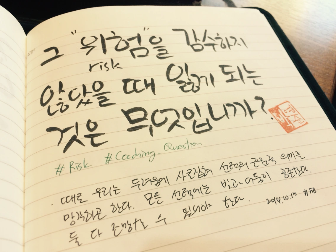 그리고 마지막으로 당신과 당신의 팀이 지속적으로 혁신을 이끌어나갈 수 있게 도와주는 질문을 던지고 싶습니다. 혁신을 시도하는 여러분 자신과 조직은 위험(Risk)을 감수하게 될 수 밖에 없지요.