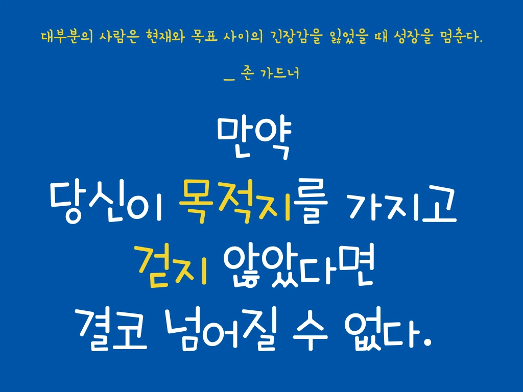 '대부분의 사람은 현재와 목표 사이의 긴장감을 잃었을 때 성장을 멈춘다.'