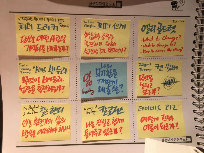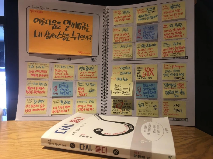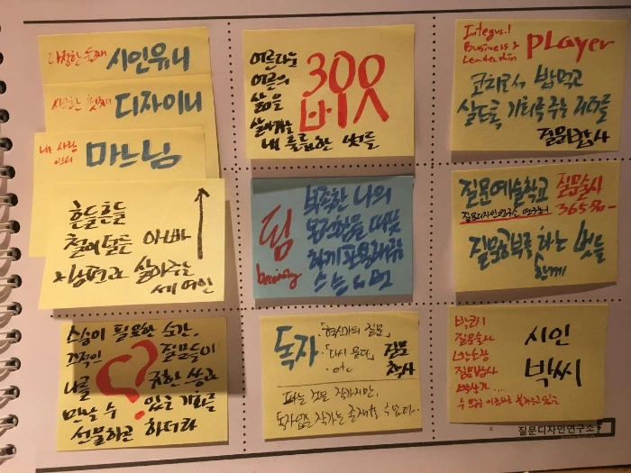 여러분도 스스로 질문노트에 답해보길 바라면서, 제가 작업했던 노트를 살짝 공개합니다. '질문노트 다시묻다'를 연재하면서, 어떻게 하면 여러분이 스스로 답을 찾도록 도울 수 있을까를 고민해보았는데, 일단 예시를 보여주는 것도 좋을 것 같아서 저의 예시를 보여드립니다. 꼭 저처럼 답하실 필요는 없습니다.