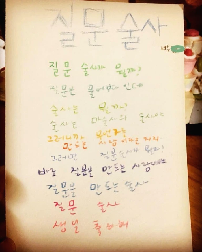가장 좋은 점은 엉뚱한 질문술사와 내조하는 아내, 아이들의 시선이 해맑다. “시란 무엇일까? 마음 따라가는 대로 쓰는 것이지 생각나는 대로 쓰는 것이지” 아이가 시를 쓰고 아빠의 흐뭇해하는 미소가 보인다. ‘당신은 어떤 사람으로 기억되고 싶은가?’라는 질문에 “질문술사인 나는 온전함을 질문하는 사람이다. 질문책사인 나는 성찰을 디자인하는 사람이다. 질문밥사인 나는 나눔을 플레이하는 사람이다.” 어떤 사람으로 기억되는지도 중요하겠지만,‘누구에게’ 기억되는지가 더욱 중요한 문제다. 행복이 가득한 질문술사 가족과의 만남은 질문을 품고 사는 일상의 순간을 만나게 해 줄 것이다.