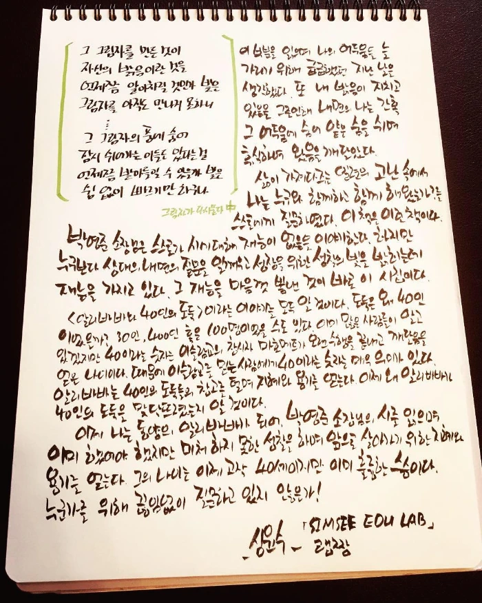 39. 시인의 글들은 내가 마주했던 마흔 개의 해를 찬찬하게 다시 보게 했다.